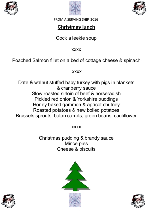 Gold Rover's Final Christmas Menu, 2016, Falklands.